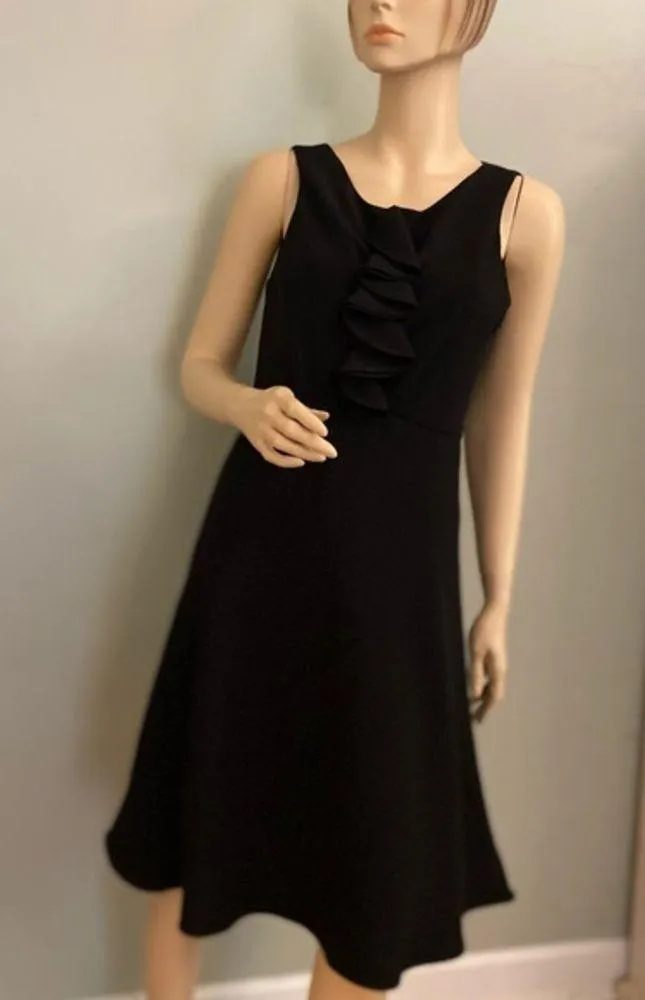 Beautiful Black cocktail dress by Calvin Klein size 8 . Front ruffle embellishment side zip
