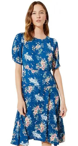 LOFT Floral Chiffon Drop Waist Puff Sleeve Flutter Midi Dress Size 4 From its puff sleeves to its... Show more