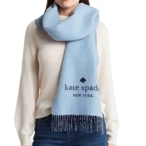 NWT Kate Spade Wool Cashmere Logo Oblong Ocean Fog Scarf NEW Instead of liking this item, send me... Show more