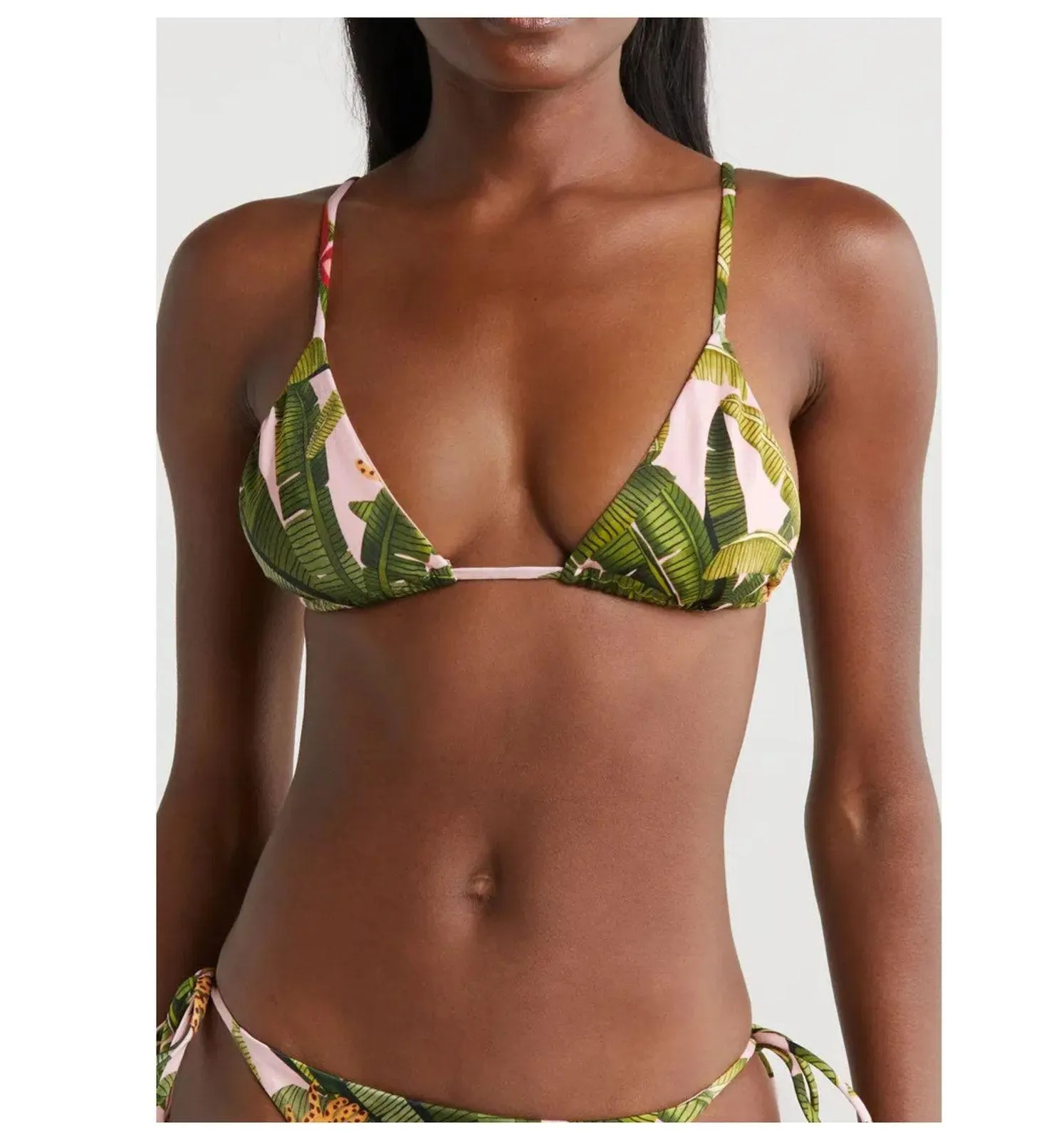 Strappy ties and a bold print bring tropical energy to this beachy bikini top. Size: XS=0-2 Color: Ties at neck and back Lined 84% polyamide, 16% elastane Machine wash, line dry Condition: New without tags, Check my other listings. I have the bottoms in Small.