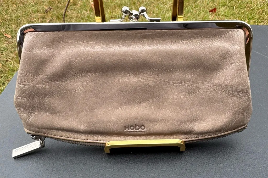 The Hobo International Wallet Clutch in Gray is a stylish and functional accessory for women. Made f... Show more