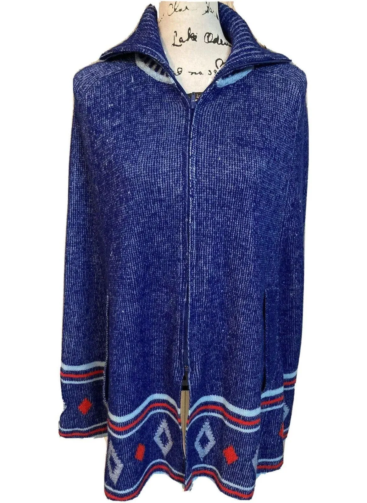 Fashioned by Lee Women's Vintage high neck full zip Poncho/cape Blue red