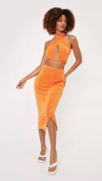 RETAIL $40 Bold orange midi skirt from Nasty Gal. Made from soft terry-style fabric, it features a f... Show more