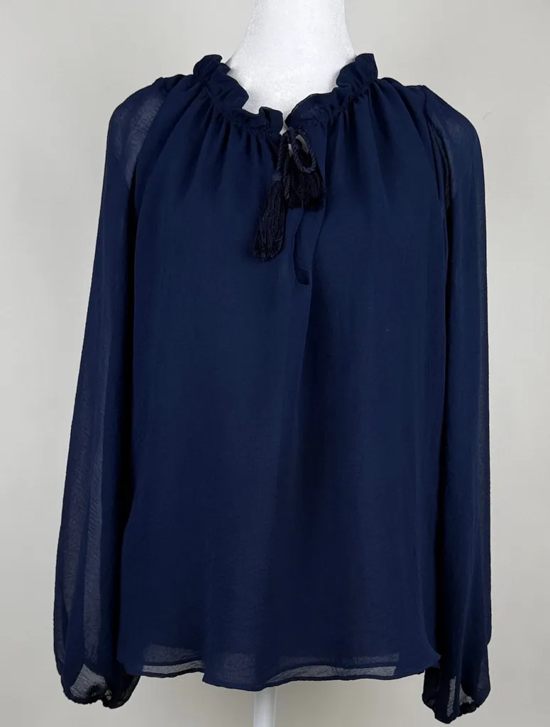 Misa Los Angeles Long Sleeve Ruffle Navy Blouse Top Tassels Size Small Blue - $51 - From Melissa