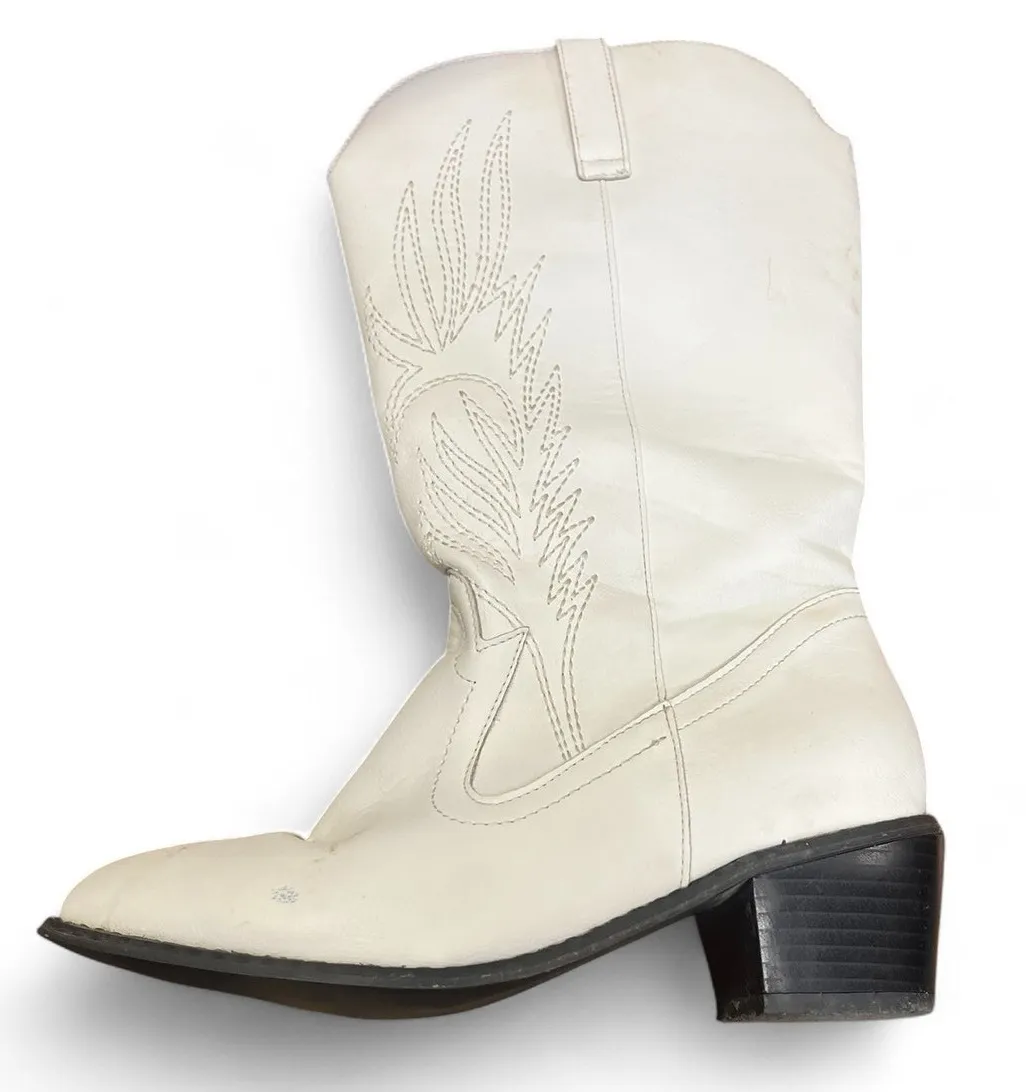 6 / 36 | white cowboy boot chunky heel embroidered Western Pointed Toe Women - $19 - From Sourced In SoCa