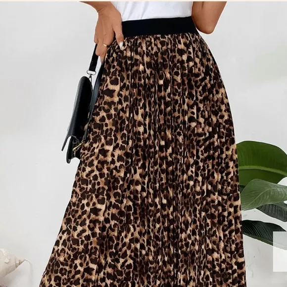 chic A-line Leopard midi Skirt! This stylish skirt features a A-line design and is perfect for adding a touch of wild elegance to your wardrobe. Stay comfortable and fashionable with its opaque body, Flowy midi skirt, Black elastic waist, miniskirt lining, color may vary by device screen and light, smoke pets free environment, fast shipping. STOCK PHOTO ONLY FOR STYLE PURPOSE