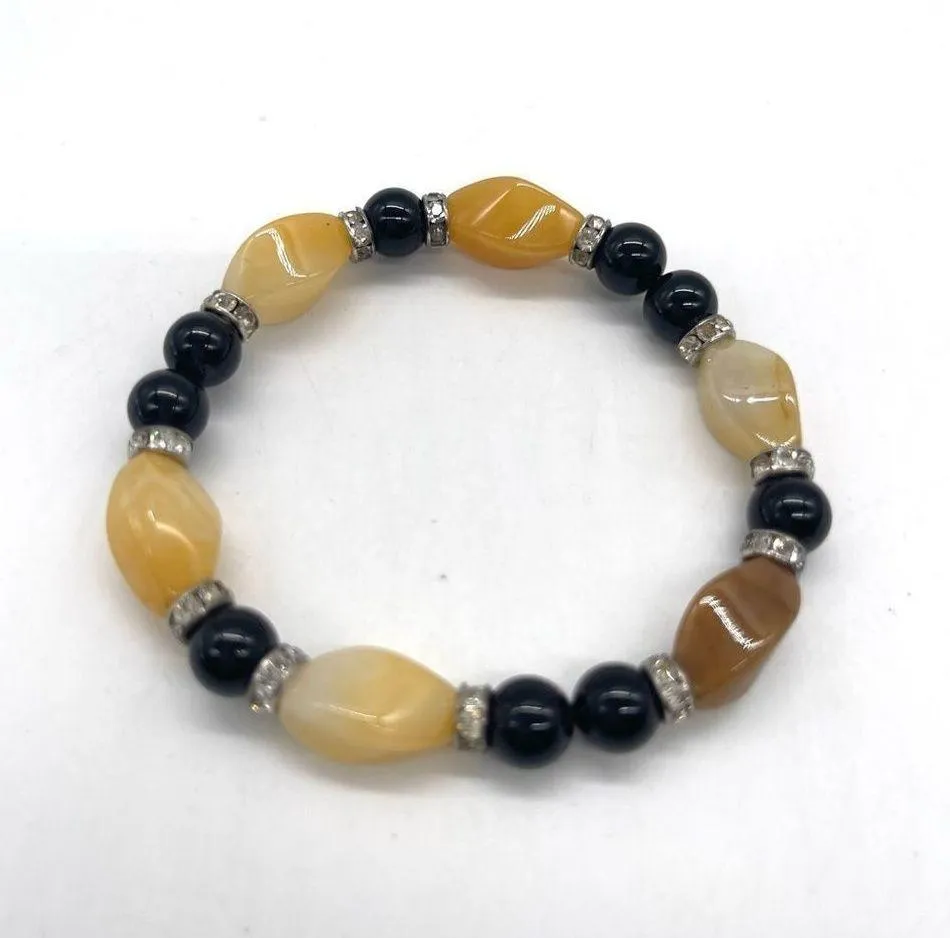 ButterJade & Faceted Flat Circle Agate with accent Gemstone Stretch Bracelet Yellow - $35 - From Louella