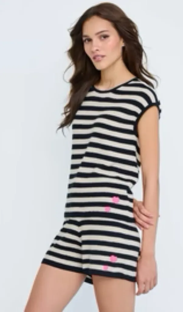 . Designed with comfort and style at the forefront the Summer Lovin’ Short has an elastic waist and contrast pull ties, the all-over stripe and embroidered crochet heart detail pair perfectly with the Summer Lovin’ tank top. FIT: True FEATURES: 100% Cotton All-over stripe Crochet heart detail Contrast pull ties Elastic waist Model is 5’9” and is wearing size small