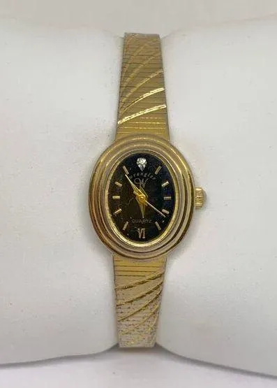 Vintage wrangler women’s quartz analog watch 19mm gold toned , black dial adjustable bracelet size u... Show more