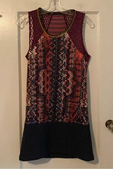 Custo Barcelona Dress Multicolor Mini Stretch Short Sleeve Sz Small - $76 - From Simple