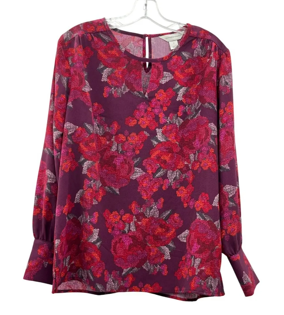 Women’s Floral Blouse Size Small – NEW – Burgundy Multi Condition: Brand New with Tags Description: This beautiful Christopher & Banks floral blouse features a rich mix of burgundy, pink, orange, and purple tones in a soft, lightweight fabric. Designed with thoughtful feminine details like three-button cuffs, a keyhole neckline, and a back button closure, this top is perfect for both office wear and casual days out. The split hem provides a flattering fit, while the easy-care fabric makes it simple to wash and wear. Details: Brand: Christopher & Banks Size: Small Color: Burgundy with red, pink, orange, and purple floral print Fabric: 100% Polyester Wash: Machine washable (tumble dry low) Style Features: Keyhole neckline Three-button sleeve cuffs Back one-button closure Split hem Extra button included Measurements (approximate): Pit to Pit: 20.5” Shoulder to Hem: 24” Inseam: 17” Condition: New with tags christopher and banks blouse, womens floral top, size small blouse, burgundy floral shirt, fall fashion top, new with tags blouse, office wear blouse, casual floral shirt, purple pink red blouse, split hem top, keyhole neck blouse, womens long sleeve top, wear to work, career, Fall, Winter Features: • Blouse Size: Womens S Condition: New With Tags New with tags