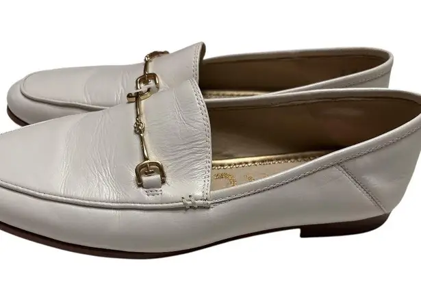 Chic white leather loafers with a gold accent. Perfect for any occasion,size 8M,used good condition