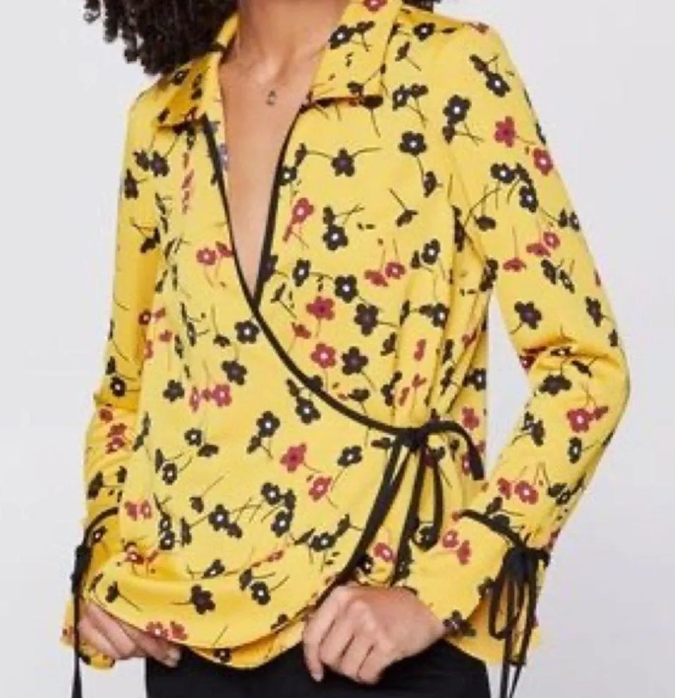 Brand new BCBGeneration yellow floral print wrap front blouse. New with tags & in perfect condition!... Show more