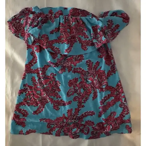 LILLY PULITZER "Rhode Island Reef" Wiley Ruffle Tube Top, Size S Measurements shown in pictures.