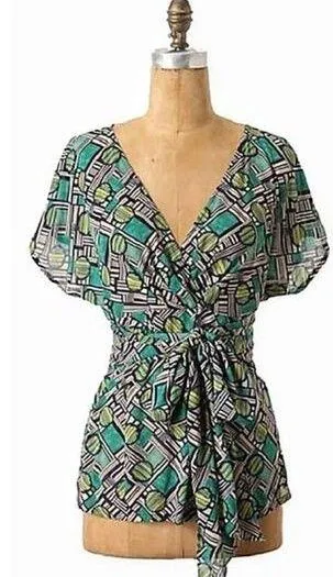 Odille Anthropologie Wrap Top Blouse Geometric Print Rayon Size 6 Beautiful allover geometric print... Show more