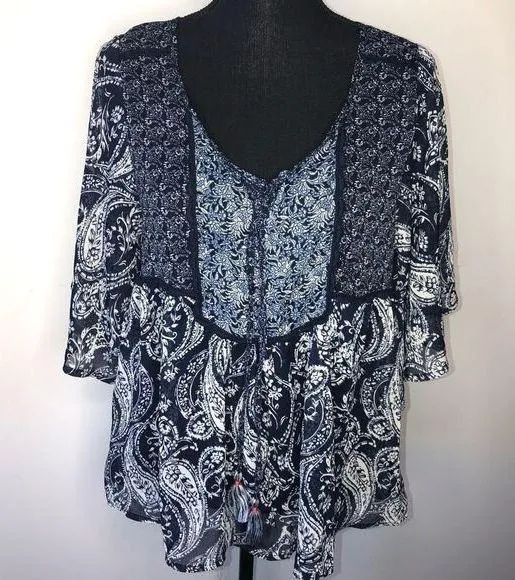 Knox Rose Blue and white in color Loose fitting Short sleeve V-neck Paisley printed Lightweight Casu... Show more