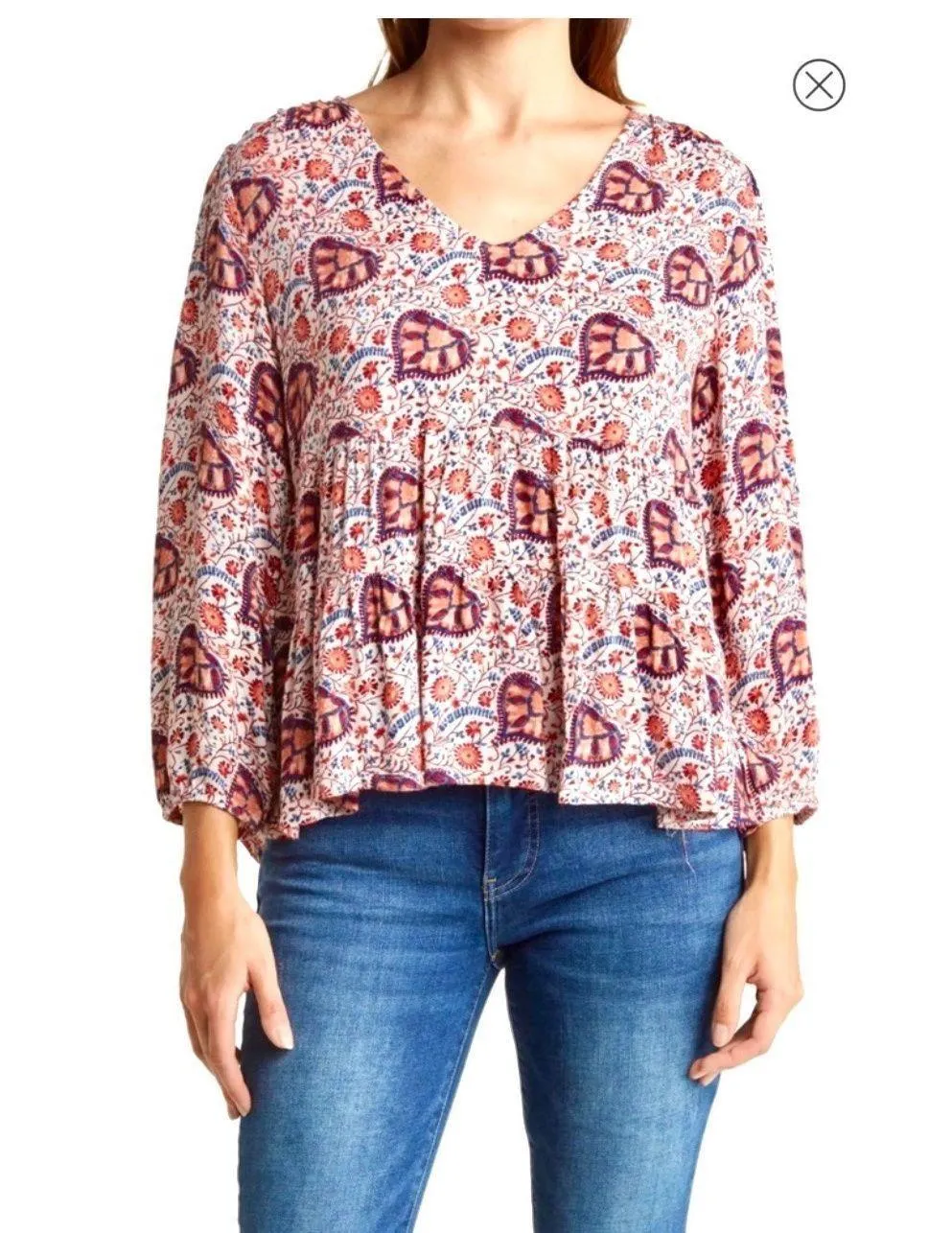 Lucky Brand Victoria Long Sleeve Baby Doll Flowy High/Low Hem Top M multicolor purple