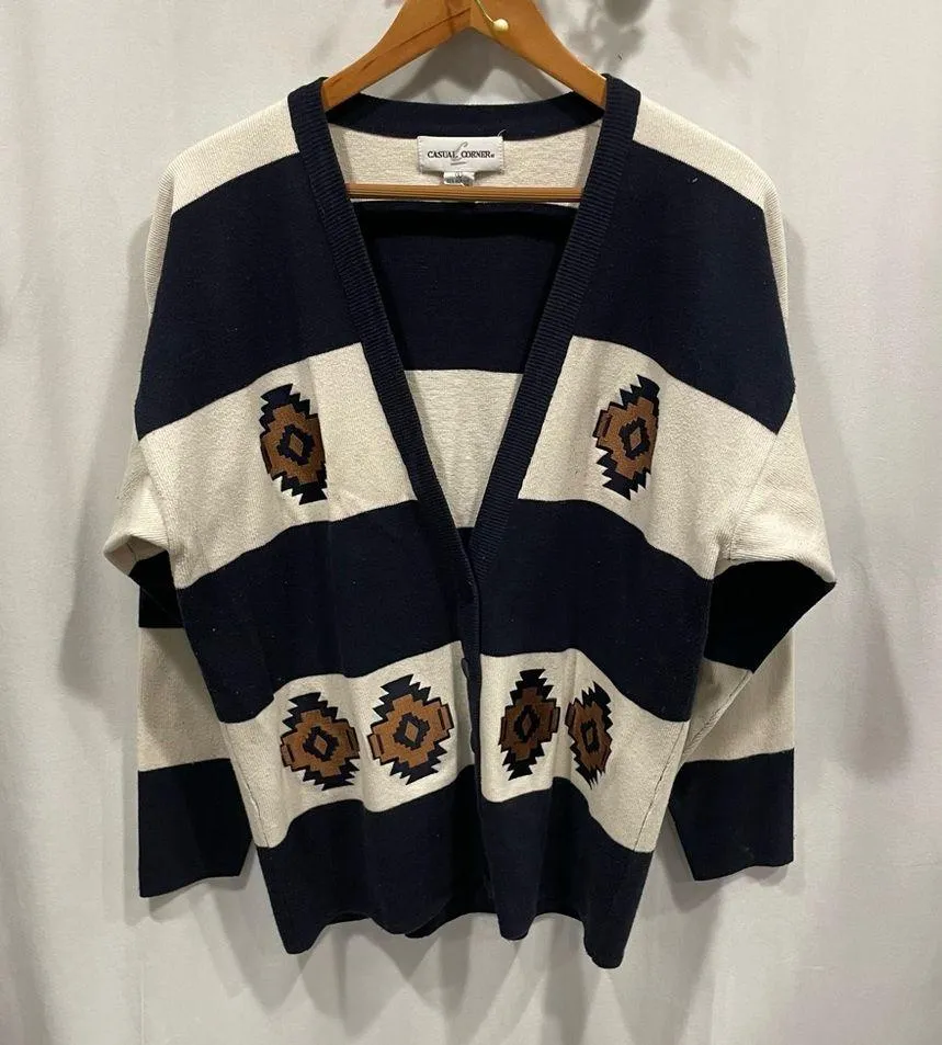 Vintage 80’s varsity stripe aztec embroidery oversized cardigan chunky funky Blue Size L - $40 (41% Off Retail) - From Ruth