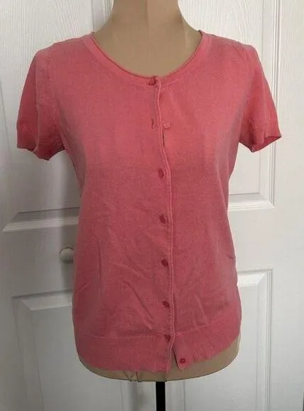 LOFT Ann Taylor Short Sleeve Round Neck Button Down Knit Top Tickle Me Pink Sz S 100% Cotton Machin... Show more
