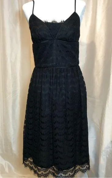 Adorable Trina Turk little black dress. Beautifully patterned lacy fabric Fully lined Adjustable sp... Show more