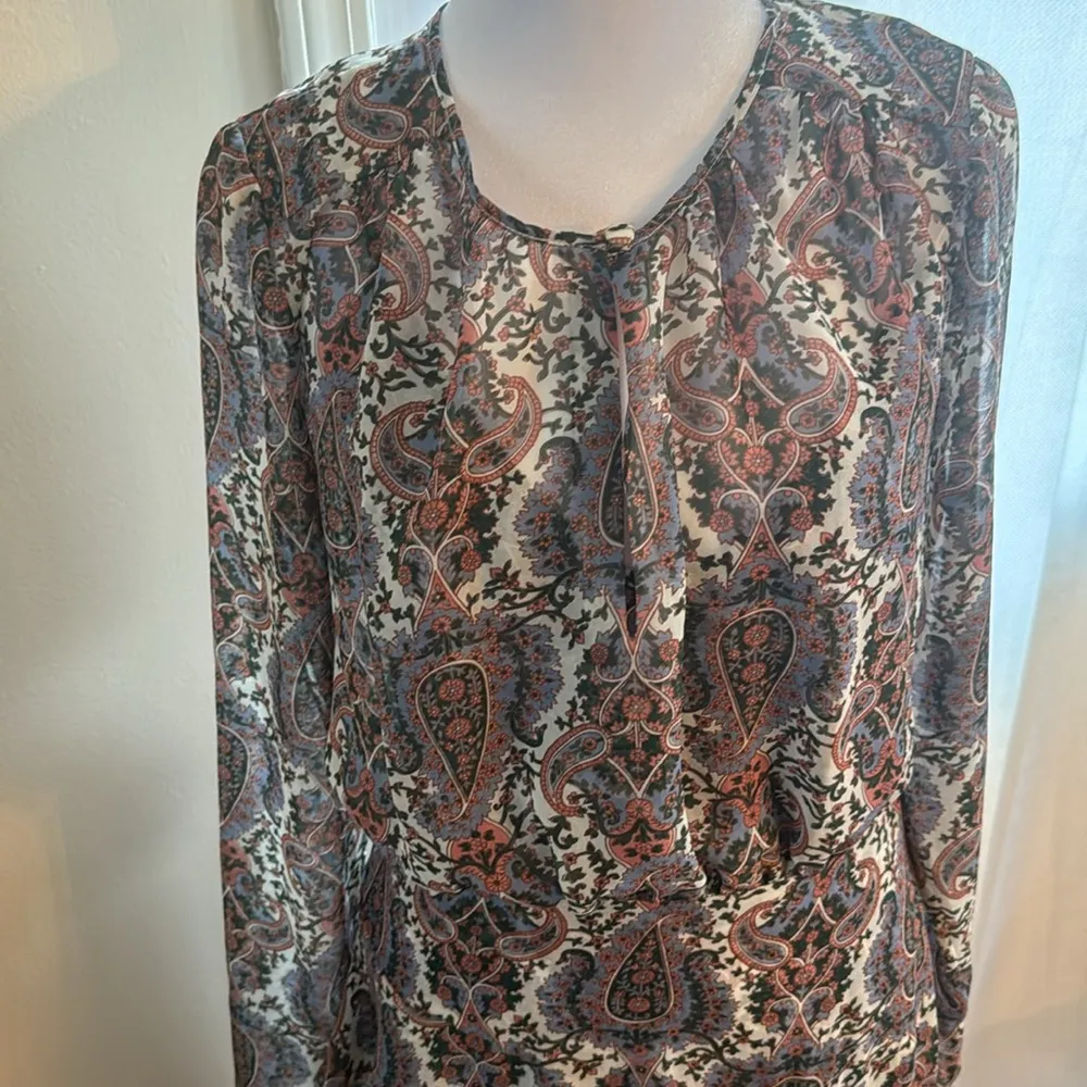 VERONICA BEARD Sazan Long Sleeve Handkerchief Hem Paisley Paisley plays in a pretty way across this winsome dress finished with ruffles and draped with a handkerchief hem. Sazan Long Sleeve Handkerchief Hem Paisley Dress Veronica Beard Jewel neck Long sleeves Partially lined 100% polyester Dry clean Imported NEW, NO ORIGINAL TAG