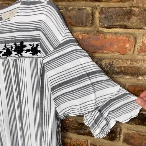 Ann Taylor LOFT Gray White Striped Black Floral Embroidered Tiered Sleeve Blouse Women's Size XXS E... Show more