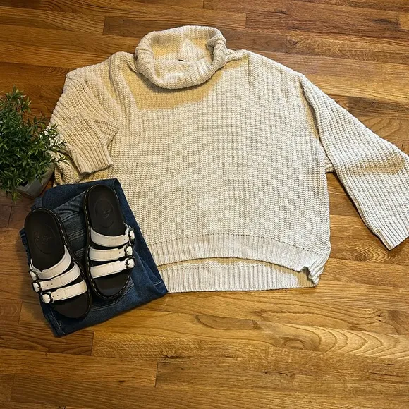 . Cozy and oversized fit with exaggerated sleeves. *damage: large snag on the front. The knit came... Show more