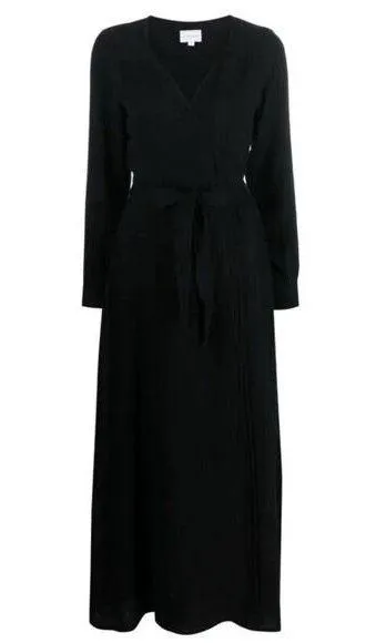 New with tags Honorine Johanna wrap maxi dress in black. 100% cotton gauze material, lightweight with crinkle texture. The Johanna Dress features long sleeves, a self-tie waist belt, and double shell button cuffs. V-neck. Long length. Adjustable waist. In new condition, some thread pulls under 1 arm and pinhole from tag on back of neck, see last 2 photos. Made in USA. Size women XS Measurements (in inches): Pit to pit 16.5 Length 51 Shoulder to cuff 24 Measurements are approximate. Check out my other listings and bundle items to save on shipping! wrap, maxi, beach, boho, breathable, comfort, gauze, lounge, relaxed, party, cocktail, resort, cruise, vacation, tropical, pool