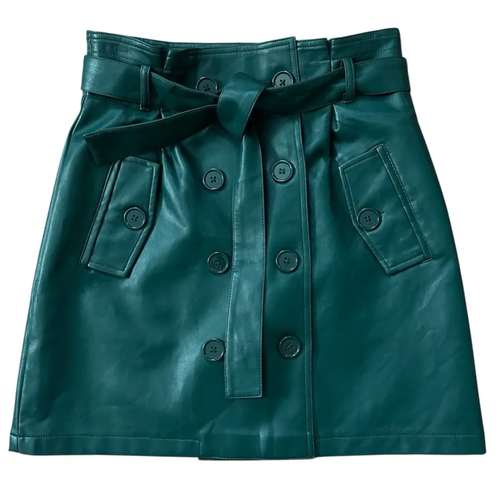 Item Highlights: Brand: Forever 21 Style Mini Faux Leather Sash Belt Wrap Skirt Color/Pattern: Solid... Show more