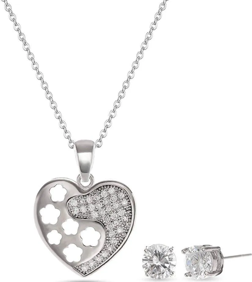 NEW Silver heart pendant necklace with pair of stud earrings and gift box, STOCKING STUFFER - $10 (65% Off Retail) New With Tags - From Christina