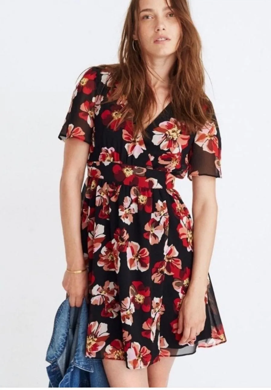 Madewell A- Line Black Dress with Red Floral Print Brand: Madewell Size: 10 Color: Black, Red, Pink... Show more