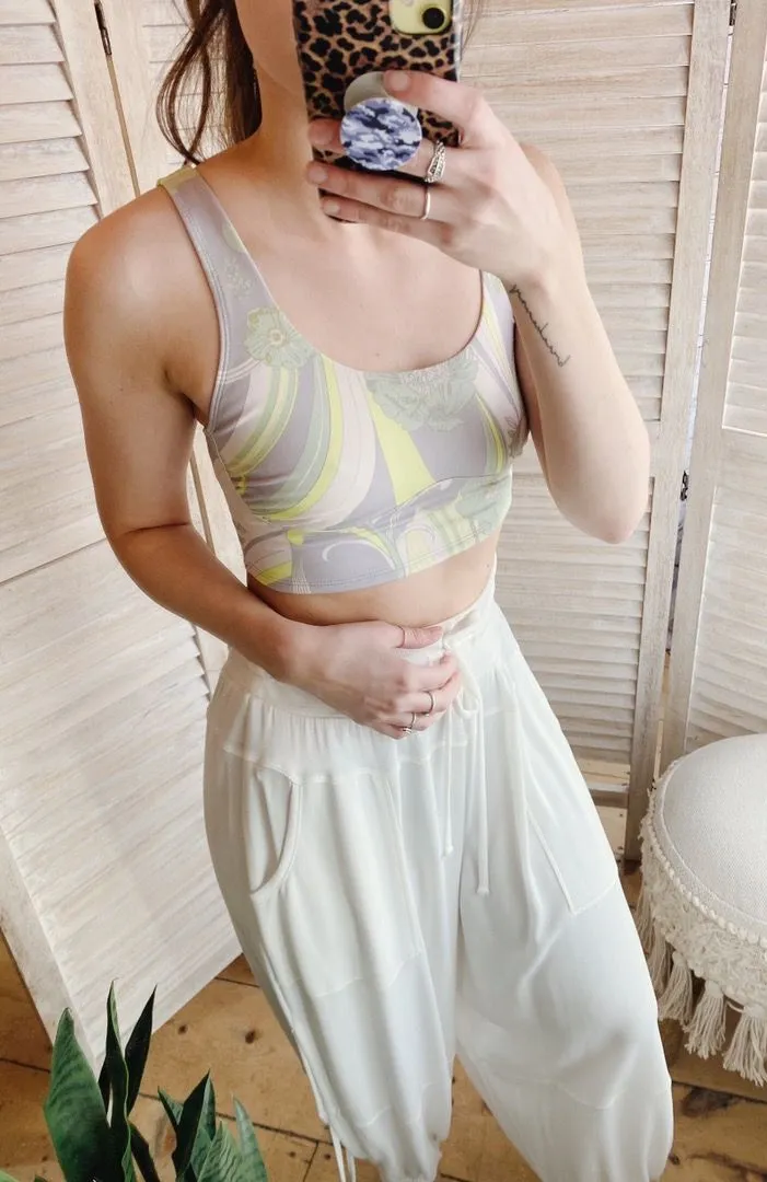 NWT Free People Movement Wave Crush Sports Bra in Bright Lime Combo floral print, size XS. Stand out while you work out in this mid-length scoop neck sports bra featured in an ultra-soft design with a compressive, holds-you-in fit. Sculpting mesh lining, stretch fit, longer length, thick banded straps. Light support, unpadded. 89% Polyester/11% Elastane Smoke/pet free home.