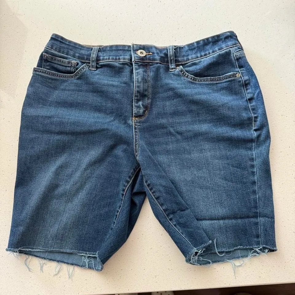 Classic and versatile St. John's Bay skinny leg jeans cut into shorts with a raw frayed hem for a la... Show more
