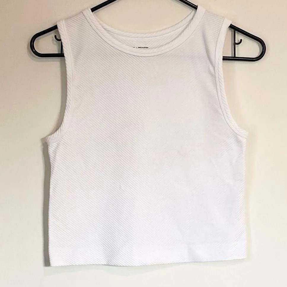 Z by Zella White Ribbed Cropped Tank Top Size: Large Chic white tank top by Zella. Features a rib... Show more