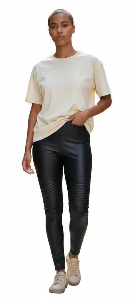 Stylish black faux leather leggings with ribbed detailing. Perfect for a chic look. 7 For All Kind... Show more
