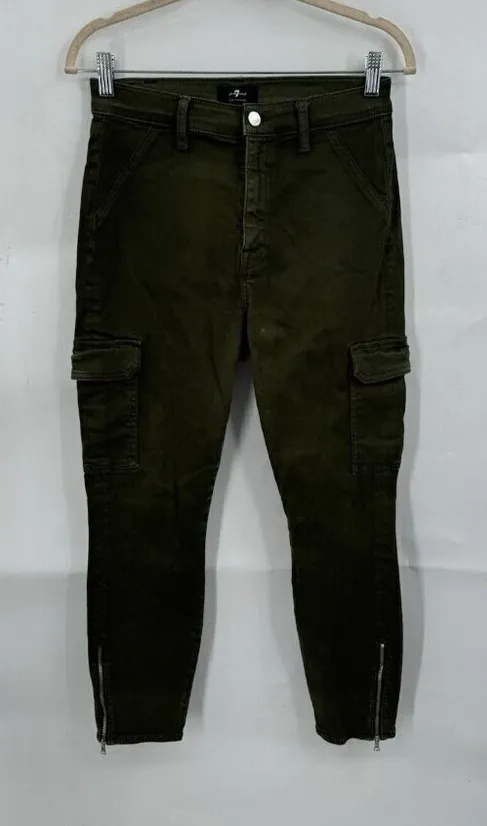 Good pre owned condition with mild wear to the fabric. Zip ankles. Faux front pockets with real ba... Show more