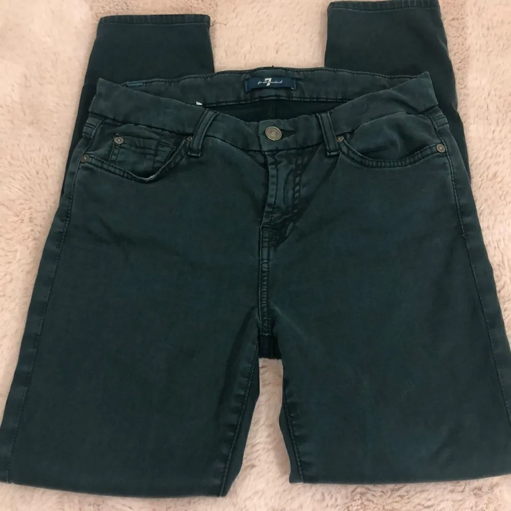 7 for mankind green skinny cropped pants • 25” inseam • 9” rise • 14” waist laying flat across • s... Show more