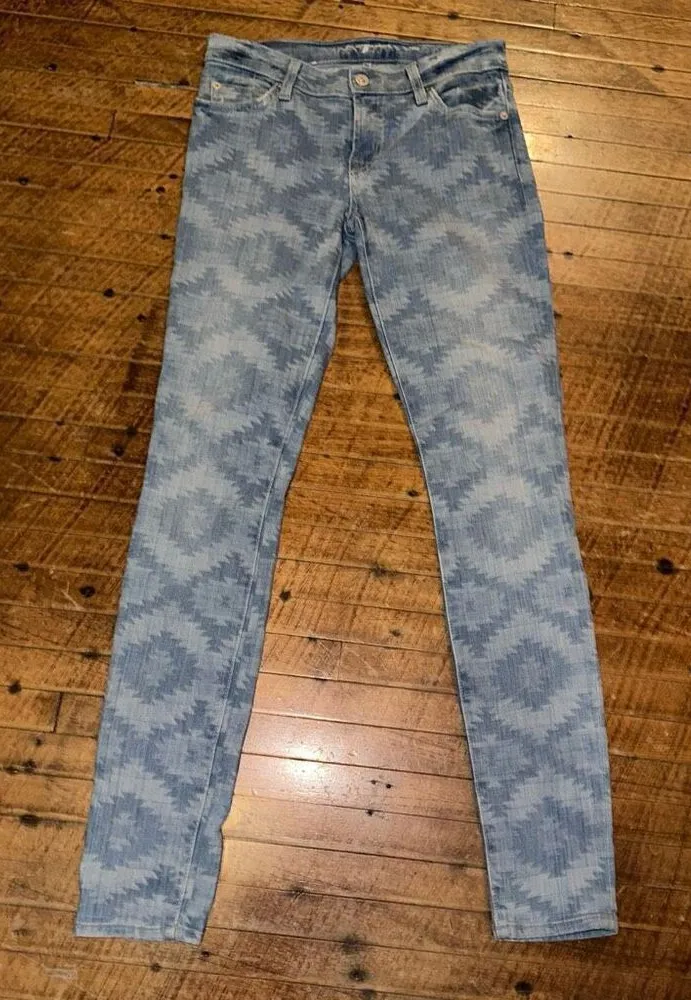 7 for All Mankind Aztec, two tone, denim, southwest, luxe, designer skinny jeans. Pairs well with a... Show more