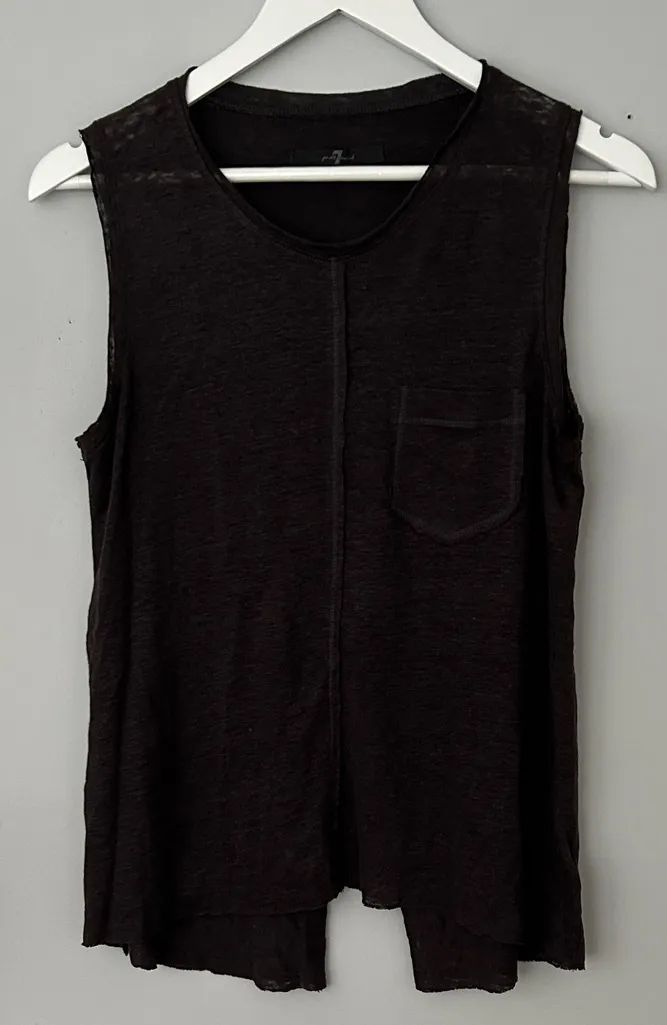 Chic black tank top with a relaxed fit. Features a stylish pocket detail.