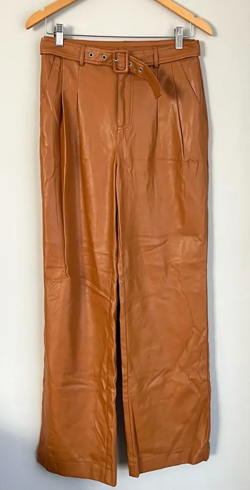 Vegan leather High waist with pleats Wide leg Stock photo to show fit
