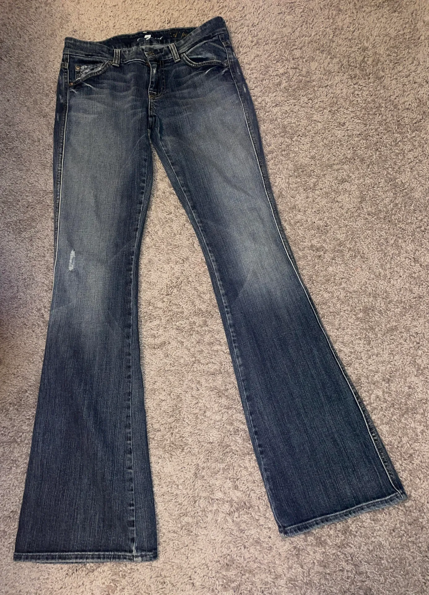 Bootcut/ flare fit, perfect condition, super cute distressed wash.