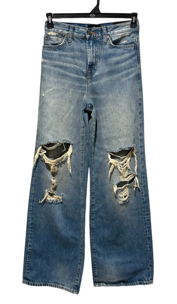 Stylish flare jeans with a wide leg. Distressed detailing on the front. Perfect for a casual look. 1... Show more