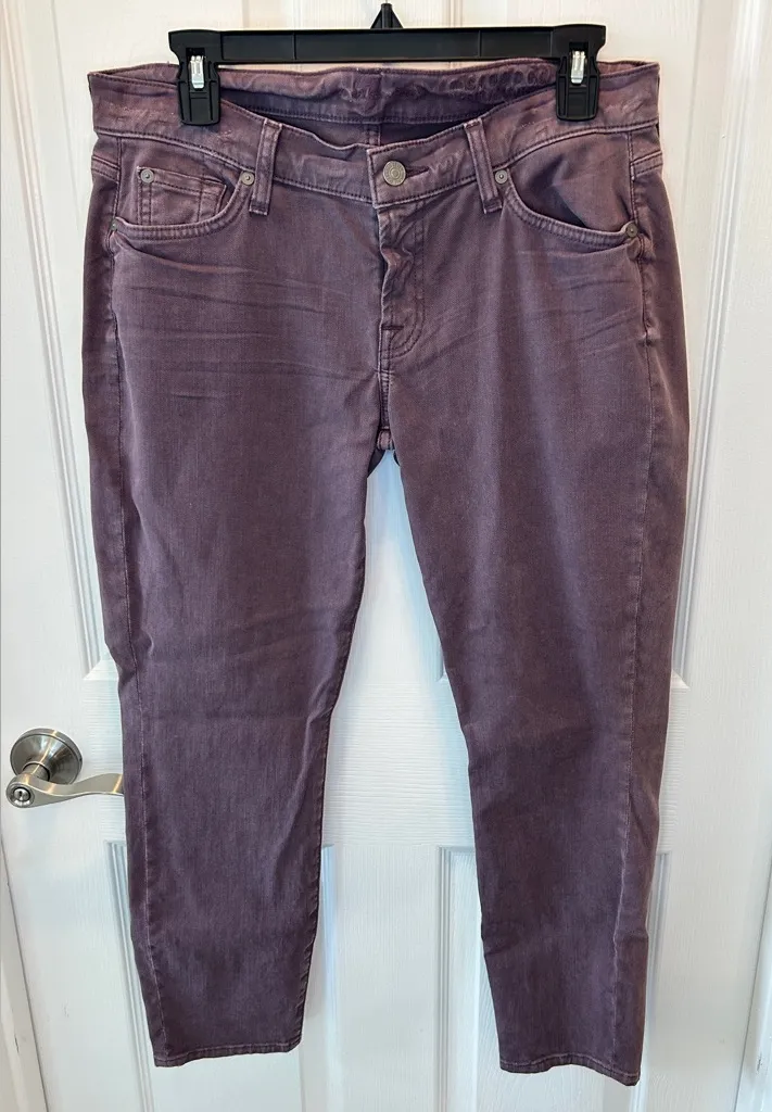 Chic plum color cropped skinny jeans. Perfect for casual wear. Soft and stylish. See pictures for me... Show more