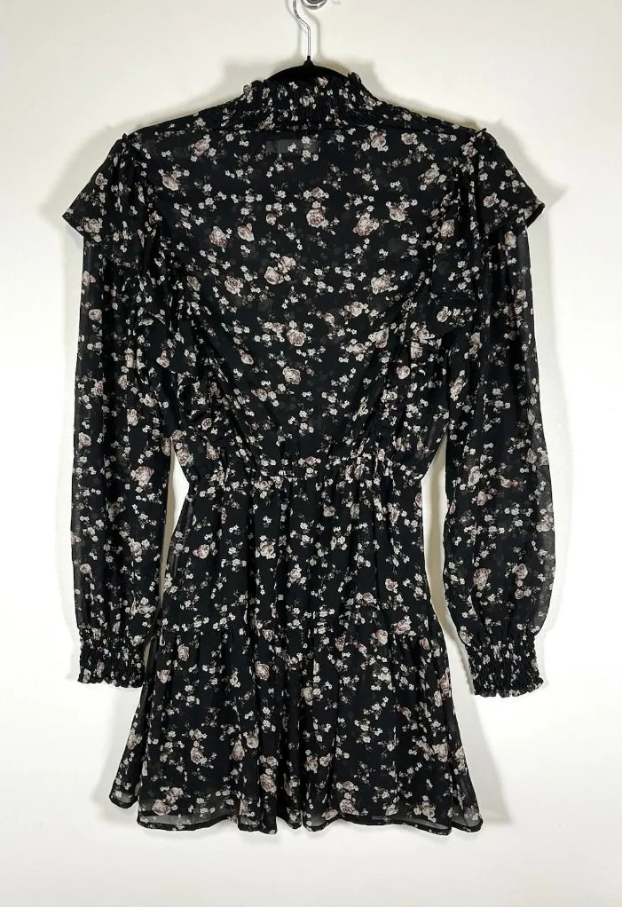 The 70/21 Dress is a stylish and versatile option for women in size small. This chiffon floral print dress features a mock neck with a zip closure, long sleeves with ruffle accents, and a short length perfect for summer, fall, or spring occasions like travel, weddings, parties, or casual wear. The dress exudes a boho vibe with its multicolor floral pattern and sheer fabric, making it suitable for a festival, date night, or clubwear look. Made from a polyester blend, this A-Line mini dress from 70/21 is a must-have addition to any wardrobe. Measurements: Armpit to armpit-18 inches Length-32 inches