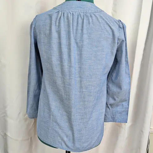 1970's Levi Strauss Ladies' Peasant style top made of a blue lightweight Chambray fabric Good Laund... Show more