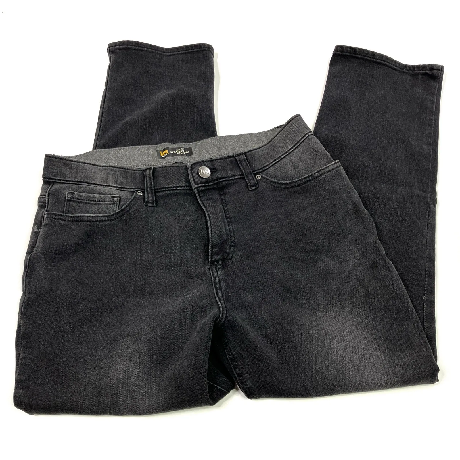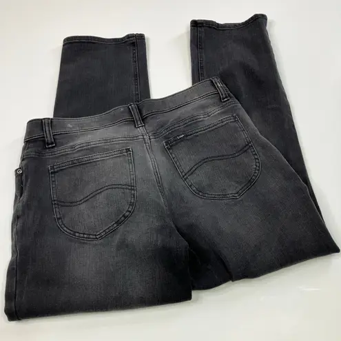 Lee Straight leg jeans Mid rise Slim fit Faded black denim Size 12 Petite Cotton/Polyester/Spandex... Show more