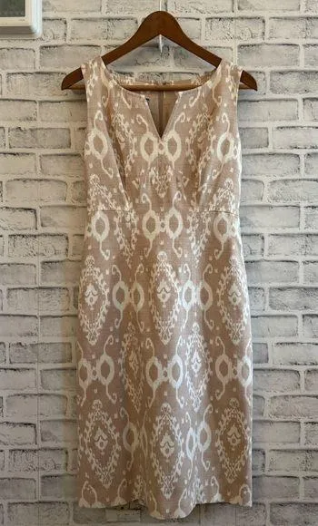 Women’s. Anne Klein New York. Tan and white patterned dress. Knee length. Sleeveless. Preowned condi... Show more