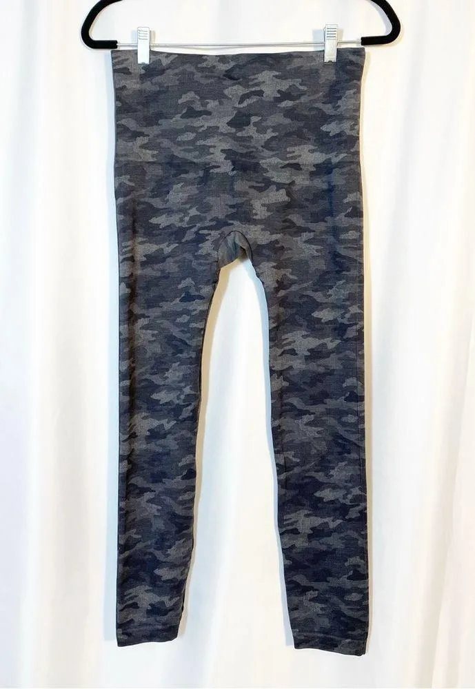 EUC SPANX Look At Me Now High Rise Seamless Leggings: Grey Heather Camo Camouflage. Size 1X. Featur... Show more