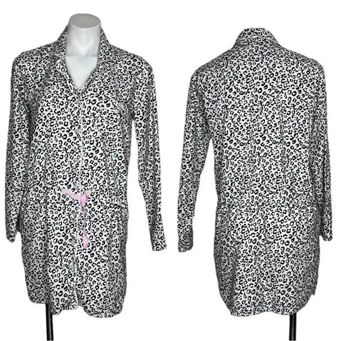 Soft and sexy Victoria’s Secret cotton robe. White snow leopard print with pink details. Pink piping... Show more