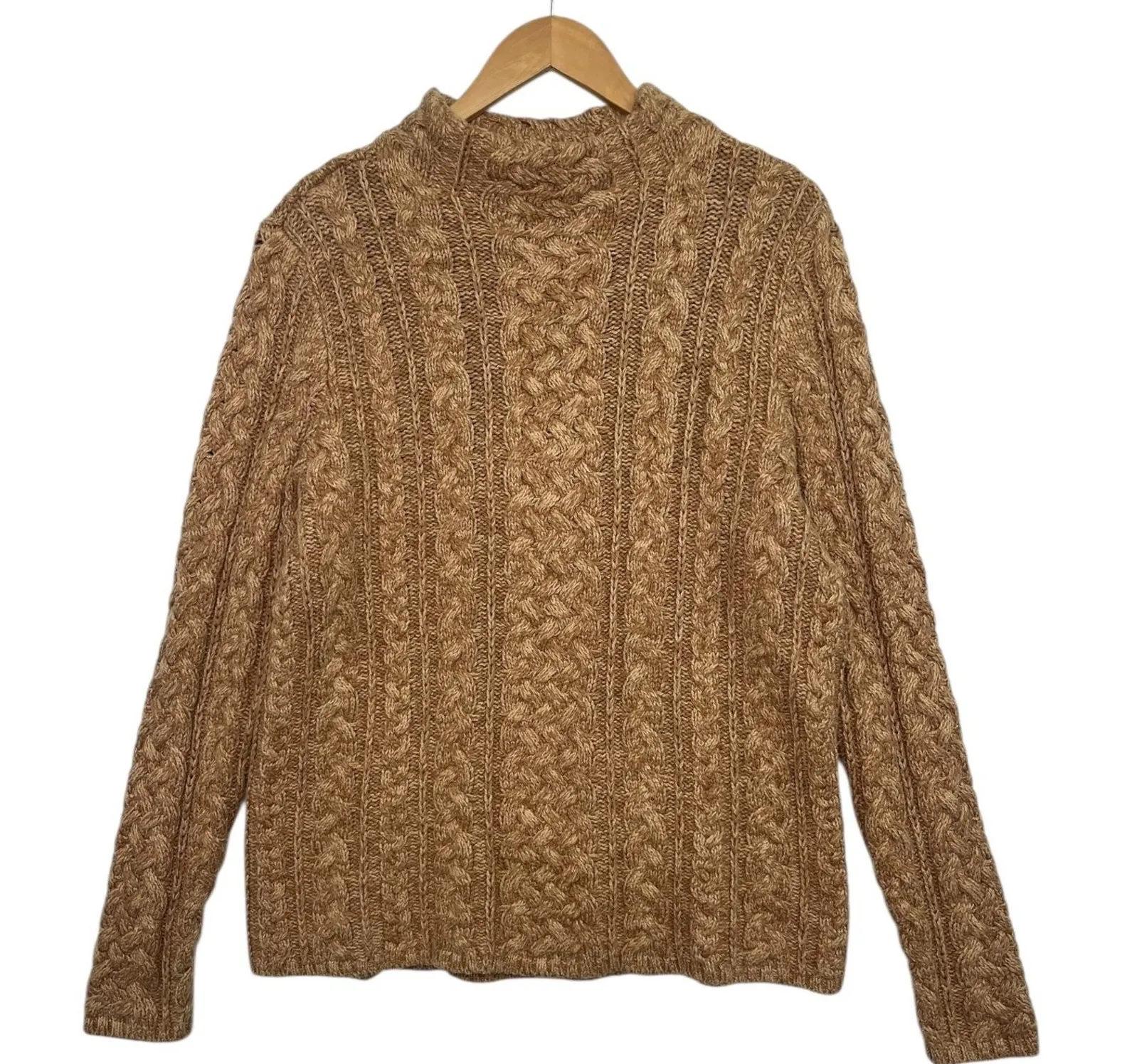 Lands End Sweater Womens XL 18 Tan Cable Knit Mock Neck Pullover Fisherman Classic, Fisherman Bran... Show more
